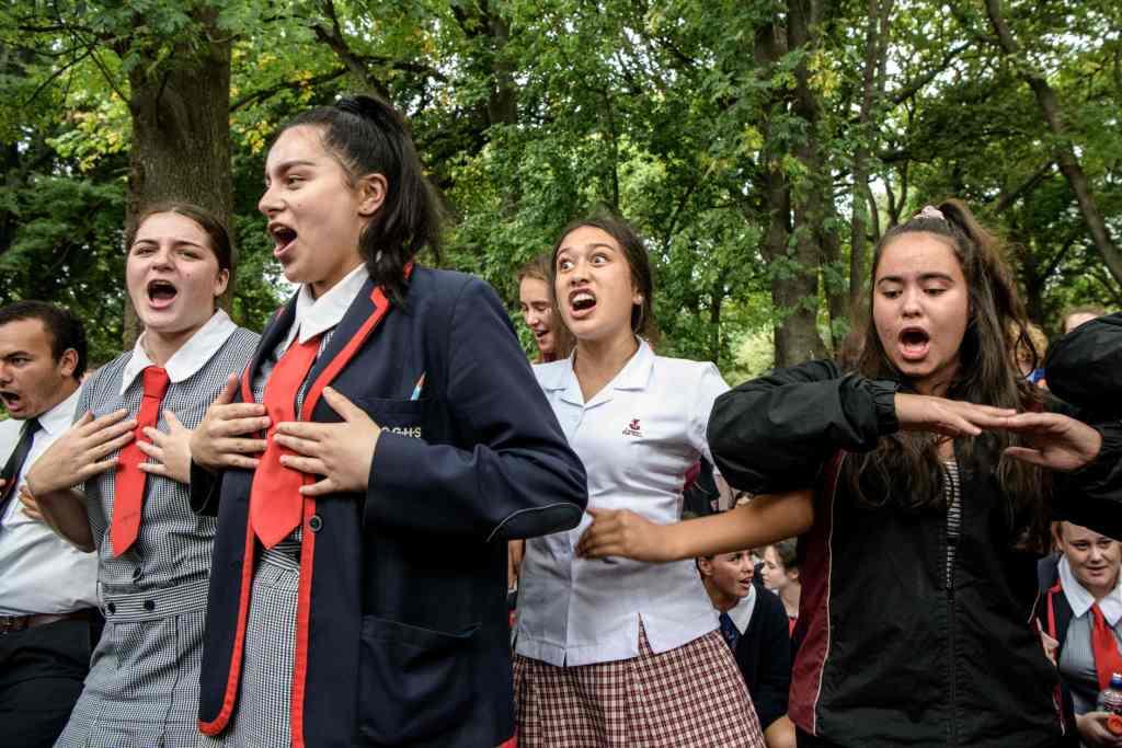 Los neozelandeses se golpean el pecho, golpean el piso con los pies y sacan la lengua, se libran a la danza ritual del Haka, tradición maroí, grito de guerra, para mostrar su solidaridad con los musulmanes enlutados luego de los ataques de las dos mezquitas de Christchurch.