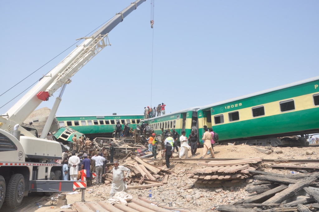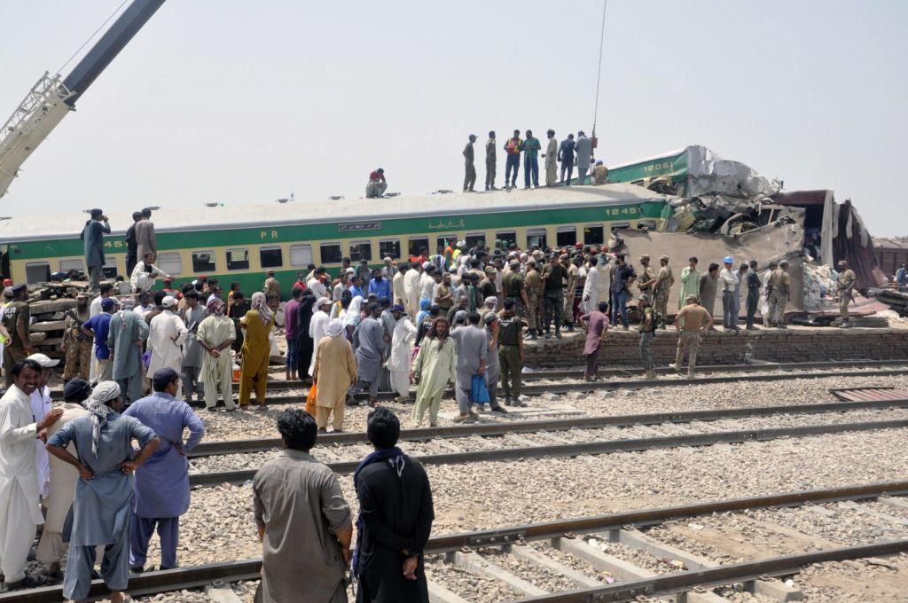 El accidente se produjo alrededor de las 4:00 horas locales en la estación de Walhar, cuando un tren de pasajeros entró en una vía de servicio y chocó con un ferrocarril de mercancías estacionado, dijo el vocero de Ministerio de Ferrocarriles, Ali Nawaz Malik.