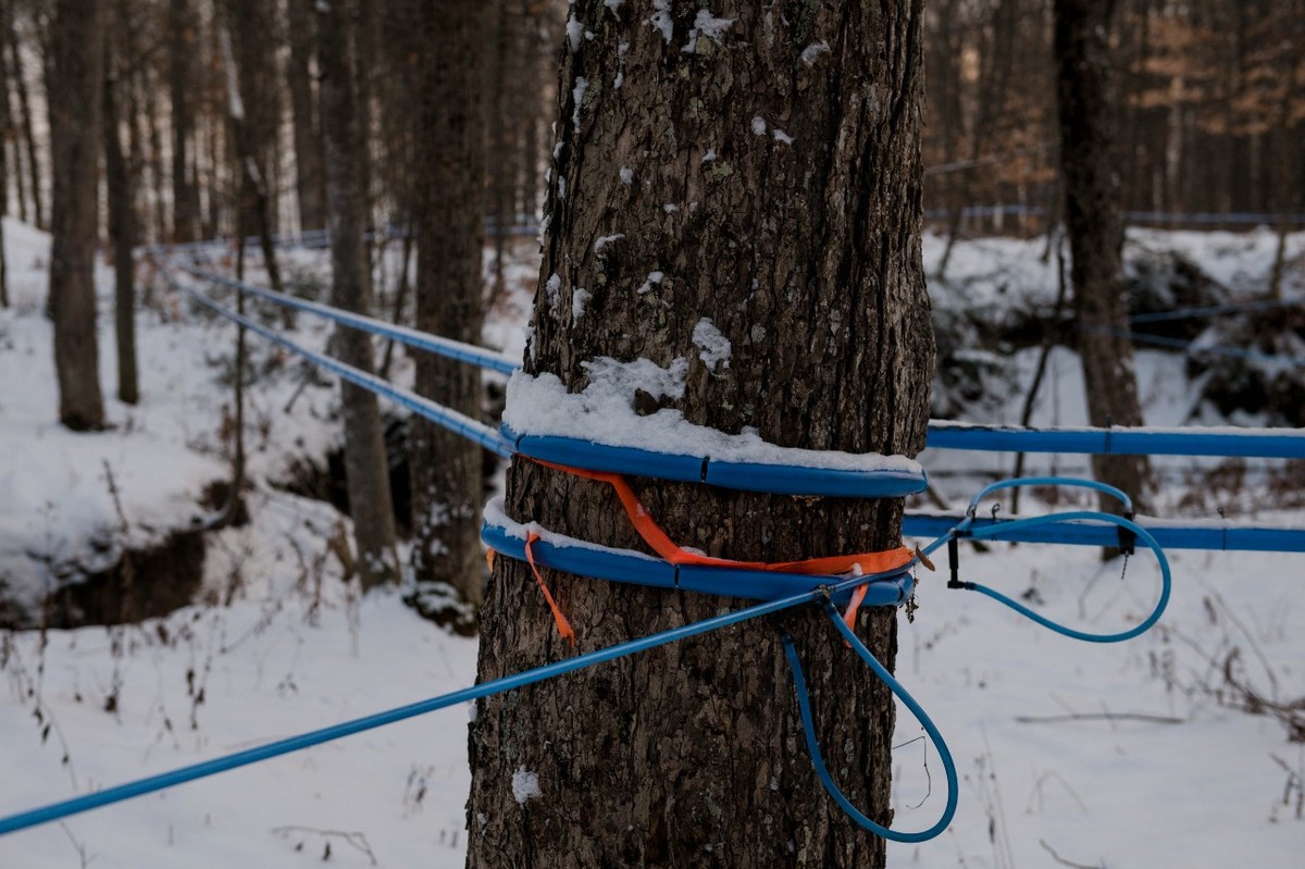 "Aquí la primavera se interrumpió porque hizo más calor más rápido de lo habitual, así que en lugar de tener un buen mes de cosecha, tuvimos acaso dos semanas y unos pocos días", lamenta Laurie Larouche, productora de jarabe de arce de 23 años.