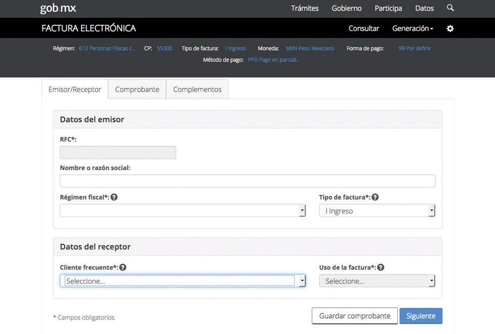 • Para generar el complemento de recepción de pagos, debes ingresar al portal del SAT y seguir el mismo proceso que en un CFDI, solo que en la casilla “tipo de factura” deberás seleccionar la opción “pago”. También es necesario que indiques la fecha en que recibiste la parcialidad, la forma de pago, el monto total cobrado, el tipo de cambio y el folio fiscal, entre otros datos.