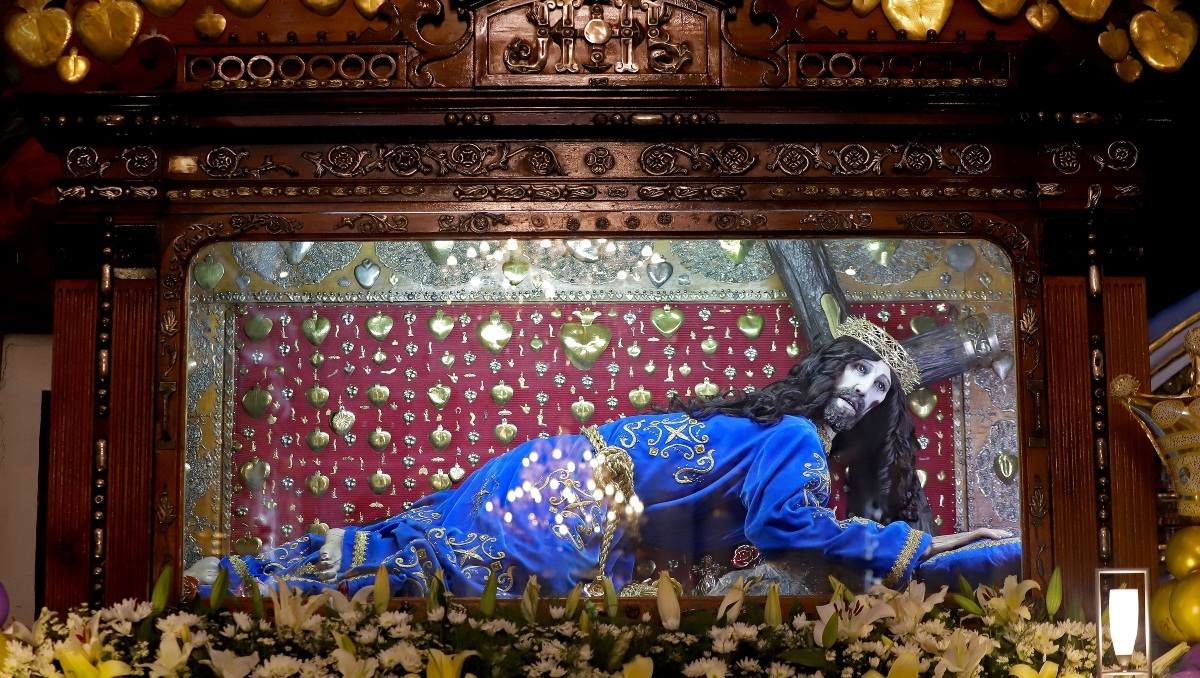 El altar de Jesús de las Maravillas suele estar cubierto con arreglos sencillos y abundantes de flores frescas, ofrecidos como promesa cumplida o súplica urgente. -