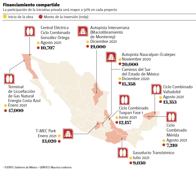 Herrera comentó que se incluyeron cuatro proyectos de la Comisión Federal de Electricidad (CFE), que si bien se desarrollarán con recursos públicos implicarán contratos importantes para los proveedores.