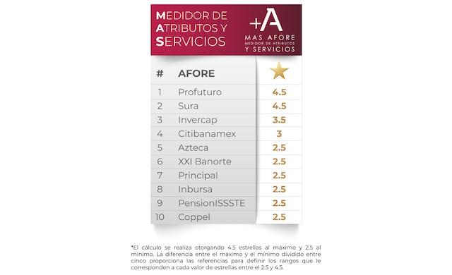 Le siguen Invercap con 3.5 puntos y Citibanamex con 3 puntos. Afore Azteca, Banorte XXI, Principal, Inbursa, PensiónISSSTE y Coppel obtuvieron 2.5 puntos.