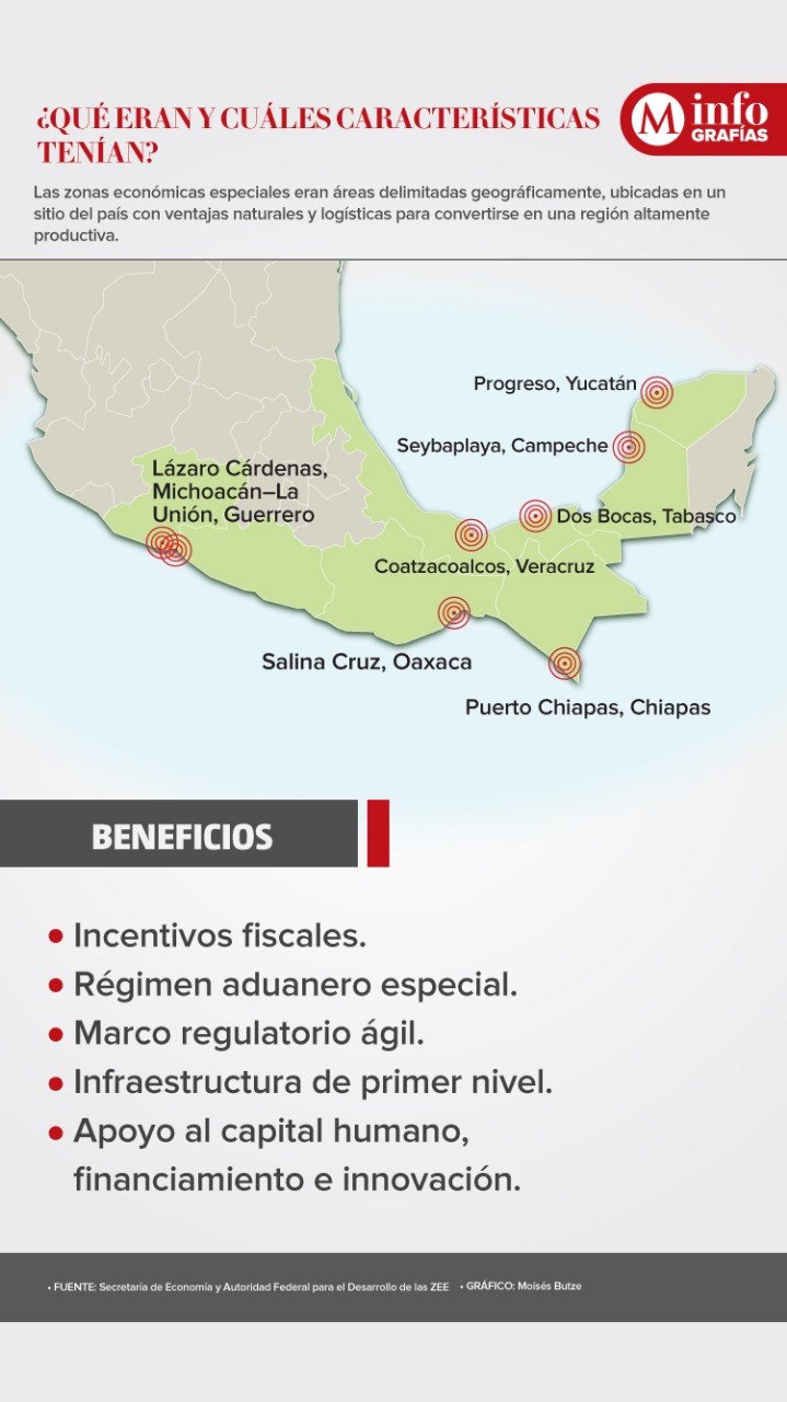 El presidente Andrés Manuel López Obrador canceló oficialmente a las Zonas Económicas Especiales (ZEE), con lo que Puerto Chiapas, Coatzacoalcos, Lázaro Cárdenas-La Unión, Progreso, Salina Cruz, Campeche y Tabasco pierden dicha distinción a partir de hoy.