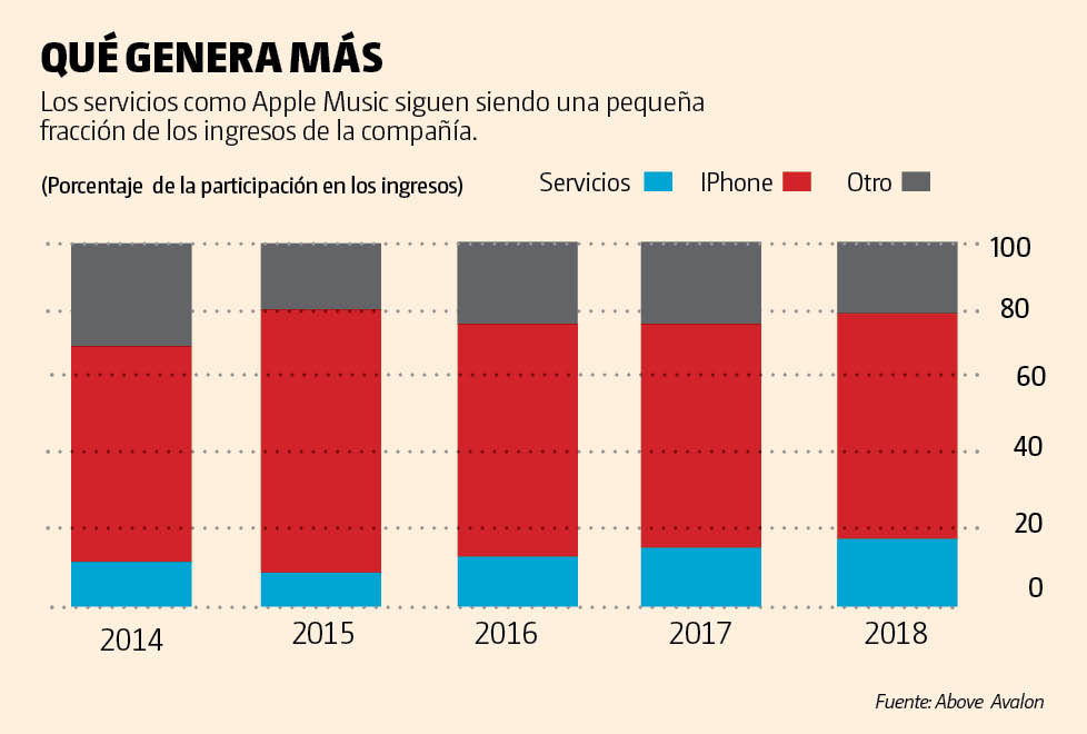 Los analistas de Goldman Sachs indicanron en una nota la semana pasada, que incluso si 20 millones de personas se suscriben con un costo mensual de 15 dólares, para 2020 solo generaría 3,600 mdd en ingresos anuales —apenas 1% de las ventas totales de Apple de 265,600 mdd que registró el año pasado— y agregue menos de la mitad de las estimaciones de 1% que tiene Wall Street sobre las ganancias.