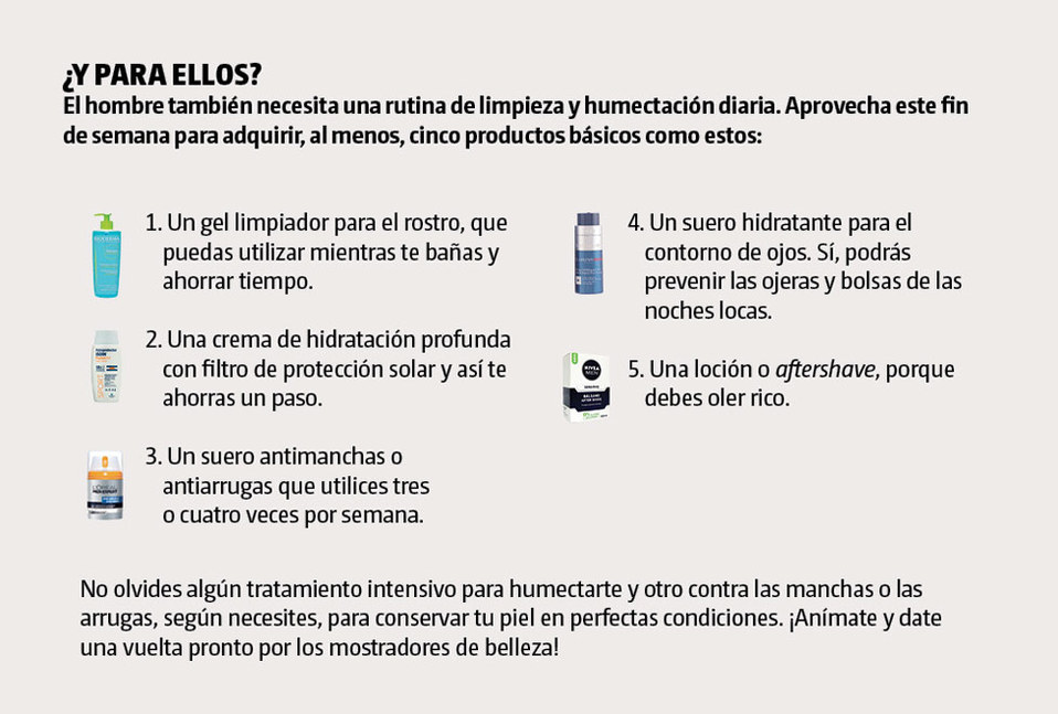 “Sabemos que es difícil encontrar una crema que elimine por completo arrugas o líneas de expresión, pero siempre habrá una que ayude a retrasarlas”, dice Uribe. Este fin de semana, encontrarás combos que incluyen crema para el rostro, para el contorno de ojos y para las manchas. “Puedes aprovechar los paquetes que ofrecerán varias marcas, ya que el precio mejora cuando compras más de un producto”, dice Guadalupe.