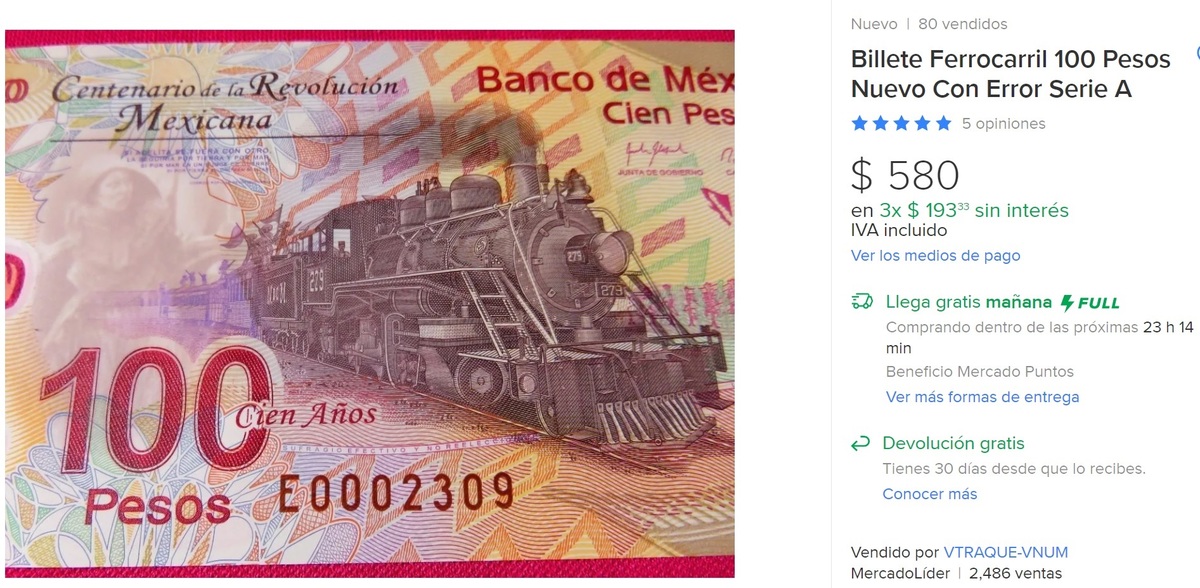Por lo anterior, y por interés de coleccionistas, su valor numismático multiplicó por más de cinco veces su valor nominal, lo cual no pasó desapercibido por un propietario de dicha pieza, que la oferta en Mercado libre por 580 pesos.