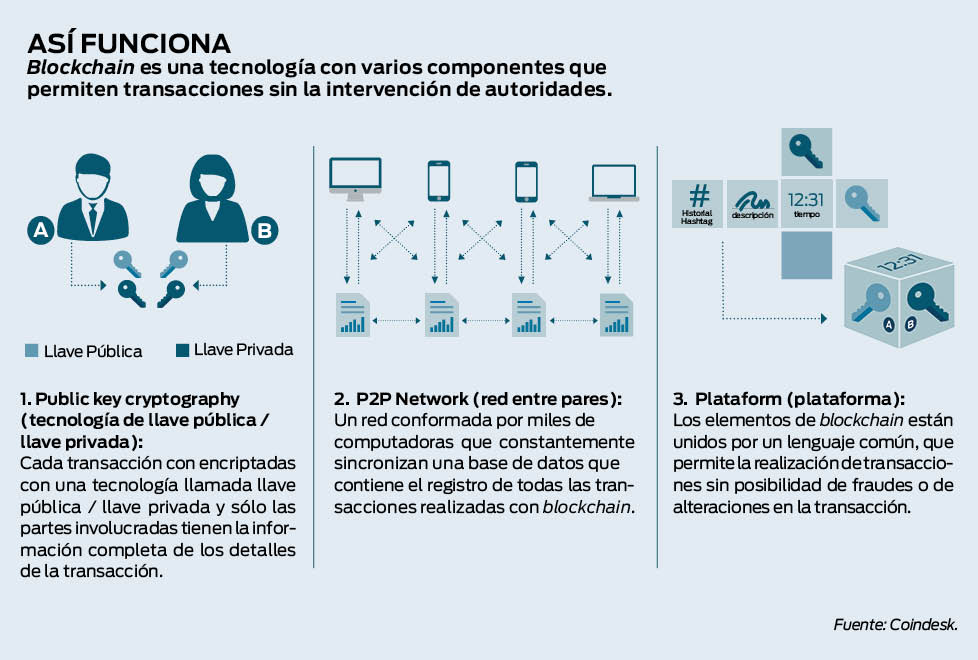 A diferencia de transacciones tradicionales, que suelen estar avaladas por autoridades como el Banco de México o un notario público, las transacciones con blockchain están avaladas por la plataforma misma, a decir de Fernanda Galicia, directora de Relaciones de Transparencia en Paybook, empresa de tecnología financiera. “Las transacciones con blockchain son registradas en un libro de cuentas digital (ledger) que registra todas las transacciones” dice.