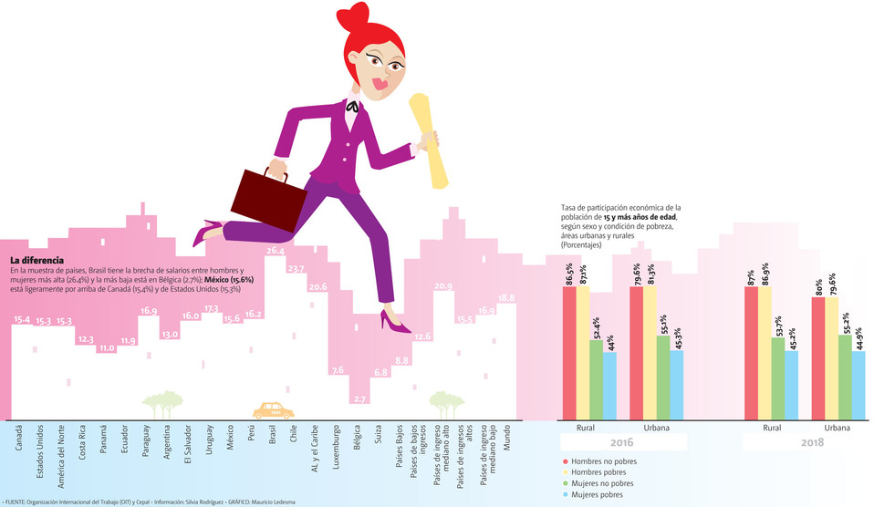 De acuerdo con cifras de la Organización Internacional del Trabajo (OIT), las mujeres ganan alrededor de 20 por ciento menos que los hombres en todos los países y enfrentan brechas salariales.