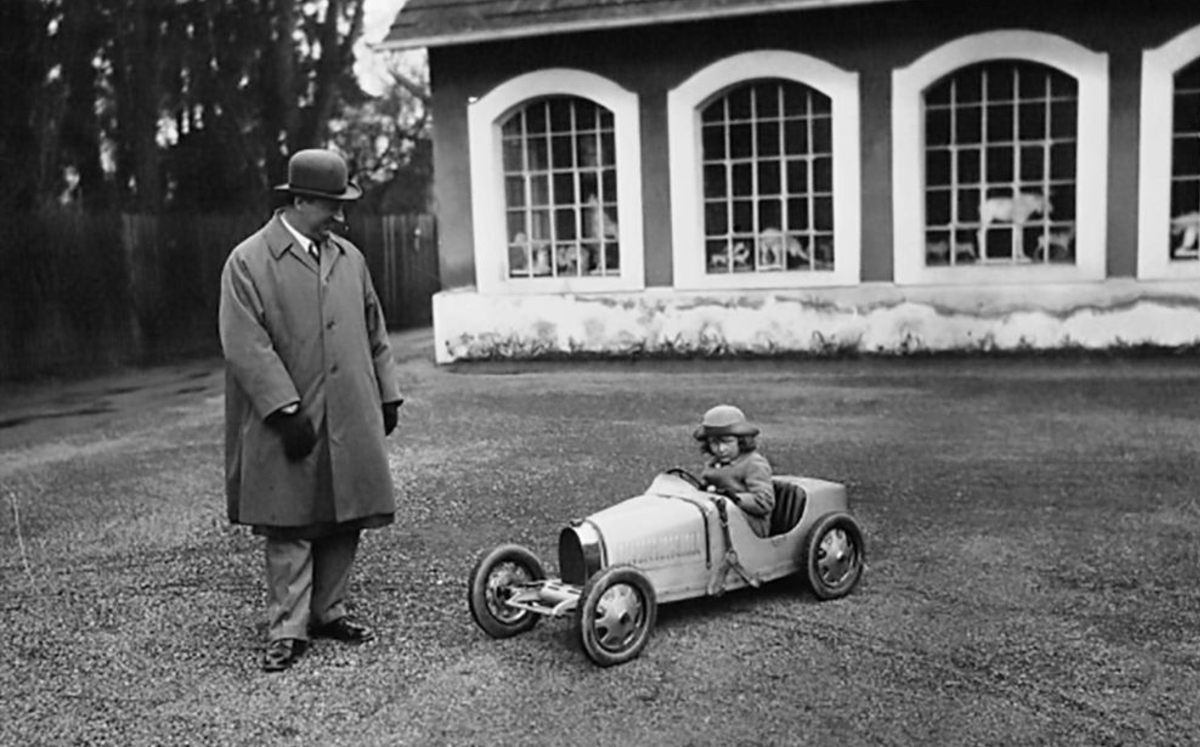 El primer Bugatti Baby era 50 por ciento más pequeño que el Type 35 en el que se basa, pero también era eléctrico, aunque contaba con frenos de madera. Aunque se planeó originalmente como una edición de una unidad, los clientes rápidamente lo vieron y empezaron a pedirlo para sus hijos, así que Bugatti produjo 500 Baby.