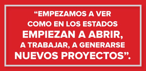Empezamos a ver como en los estados empiezan a abrir, a trabajar, a generarse nuevos proyectos. Por otro lado, observamos también que las tasas de interés están probablemente en los niveles más bajos que han tenido en muchísimo tiempo en nuestro país. Las condiciones se empiezan a ver claras para que exista confianza de inversión, de nosotros como banco de poder apoyar el desarrollo de nuestro país.
