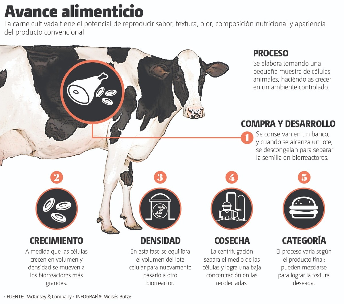 “Es decir, 300 millones llevan ya, llevaban como 10 años trabajando. El doctor Mark Post (el pionero de la carne in vitro) que lleva desde 2006 trabajando en esta área, en 2013 sacó la primera hamburguesa artificial de una empresa que se llama Mosa Meat que está en Holanda, pero todavía no sacan un producto al mercado; igual Future Meats, compañía que está en Israel que dicen es una fábrica de carne cultivada y son cientos de millones de dólares”, señaló.