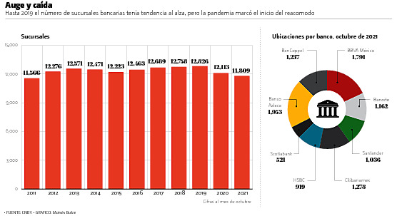 Esto ubica a la infraestructura física bancaria en los mismos niveles que tenían en 2010, y se trata de la baja en número de sucursales más pronunciada desde que se tiene registro.