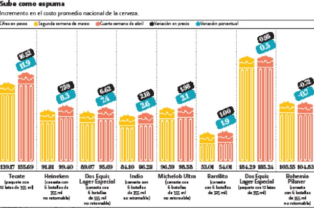 Sin embargo, la Profeco señaló que a escala nacional el comportamiento general de los precios de la cerveza no es de alza generalizada, ya que existen establecimientos donde el precio ha disminuido.