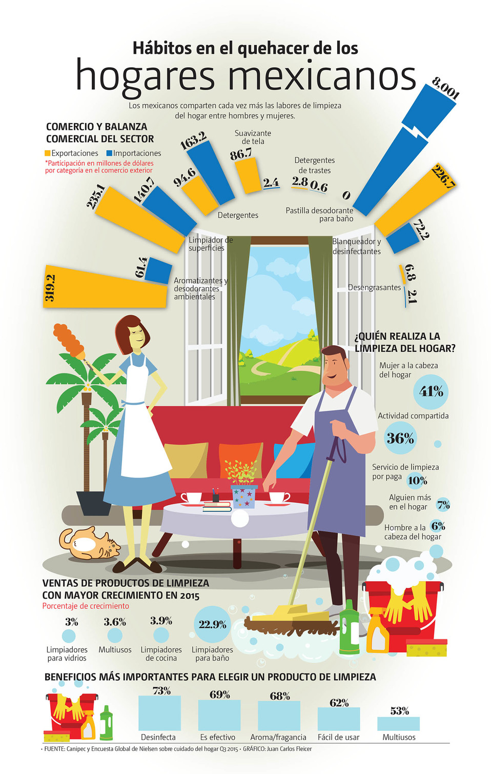 A raíz de la pandemia, la limpieza en los hogares también aumentó pero de acuerdo con el último estudio Global de Nielsen sobre Cuidado del Hogar, los mexicanos sí acostumbran realizar esta tarea. El estudio dado a conocer en 2016 reveló que casi la mitad de los hogares en México (46 por ciento) se limpiaban todos los días mientras que 24 por ciento de los encuestados reportó que aseaba ciertas habitaciones de su hogar con diferente frecuencia que otras; el baño y la cocina son las que más se limpian (89 por ciento).