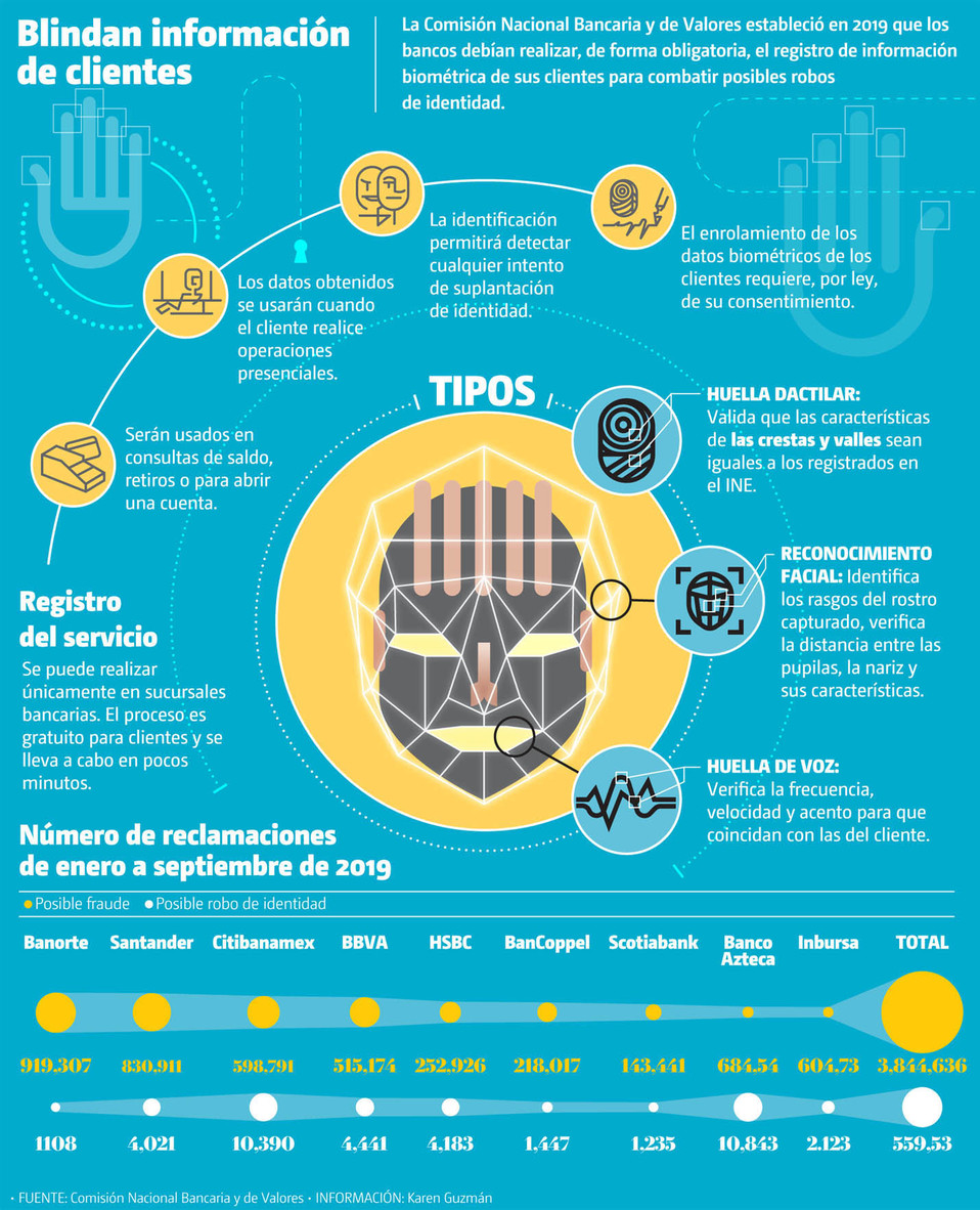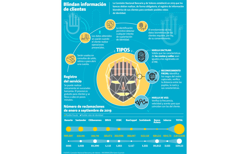 Por requerimiento de la Comisión Nacional Bancaria y de Valores (CNBV), el próximo 31 de marzo vence el plazo para que los bancos mexicanos tengan el registro, de forma obligatoria, de al menos un dato biométrico de sus clientes, como la huella dactilar, el iris o el rostro. El objetivo es combatir, entre otras cosas, el robo de identidad.