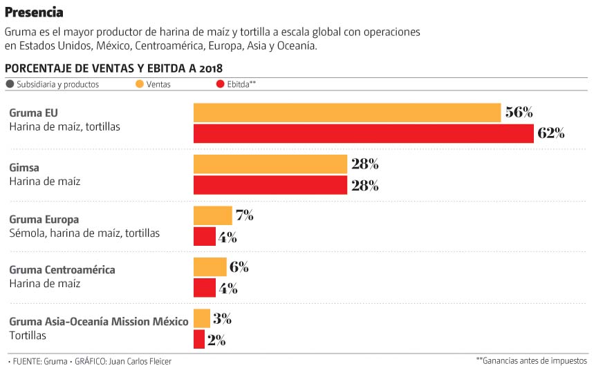 Gruma tiene en el mercado 70 años con 72 plantas ubicadas en 17 naciones, pero con presencia en más de 110 países.