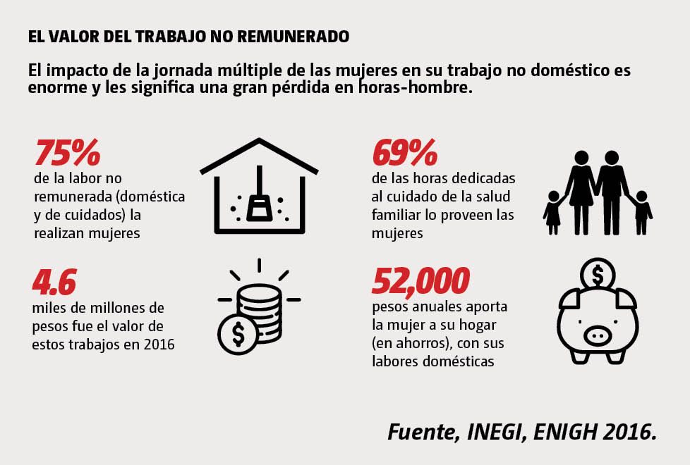 A veces solo es necesario que la mujer se decida y reconozca que no es solo su trabajo. “Está comprobado que las hijas de las mujeres que trabajan, cuando se integran a la vida laboral ganan mejores salarios; y los hijos de esas mujeres trabajadoras, cooperan en las labores doméstica hasta siete horas más que los hijos de las que no trabajan. Es un círculo virtuoso”, dice Flores Barragán.