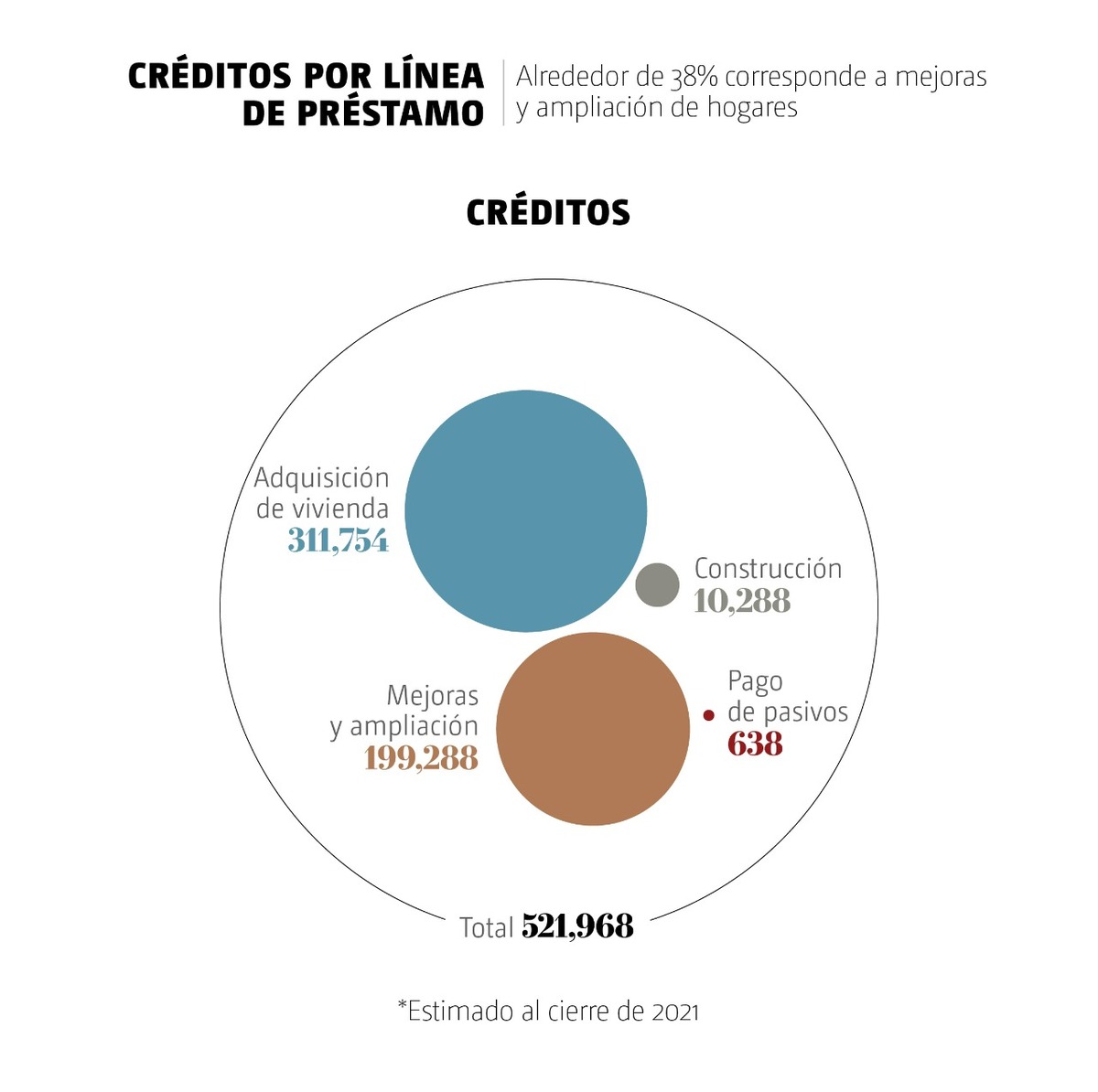 Sólo en 2021 otorgaron 530 mil 525 créditos para adquisición, mejoramiento y autoconstrucción, entre otros.
