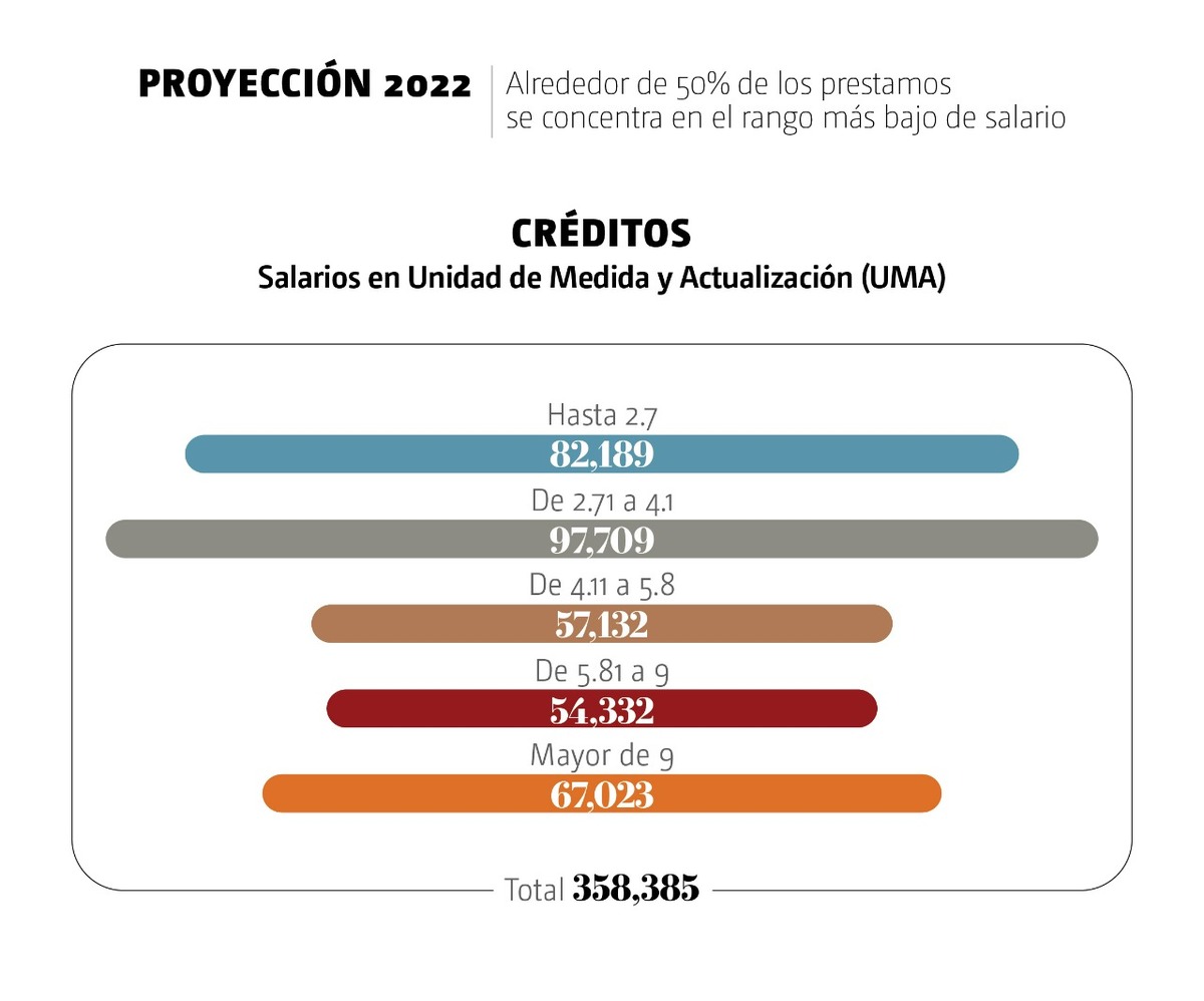 En este sentido, de acuerdo con datos del Infonavit, su proyección para este año es que, de los 358 mil 585 créditos, 50 por ciento sea para trabajadores de menor salario, es decir que tengan ingresos diarios de hasta 394 pesos.