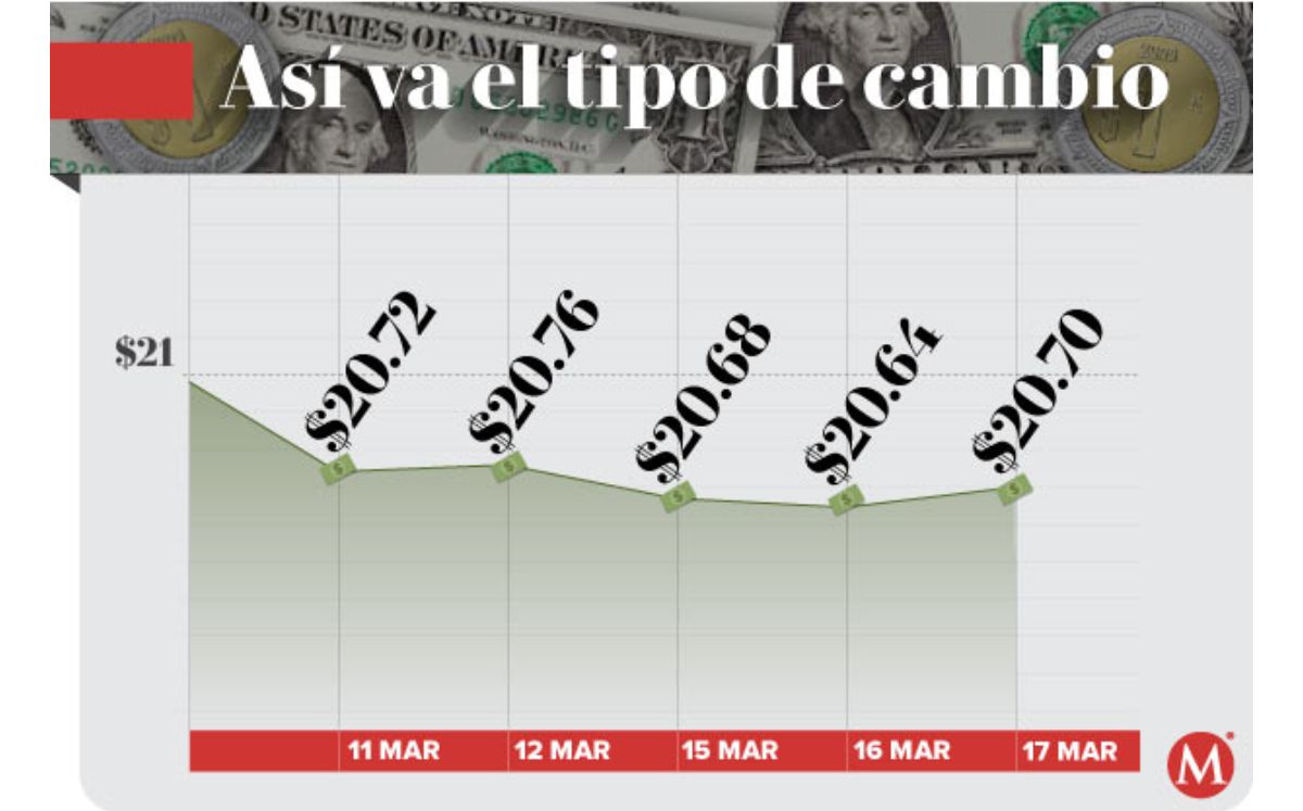 El Banco de México (Banxico) registró la sesión previa un tipo de cambio de 20.57 pesos por dólar.