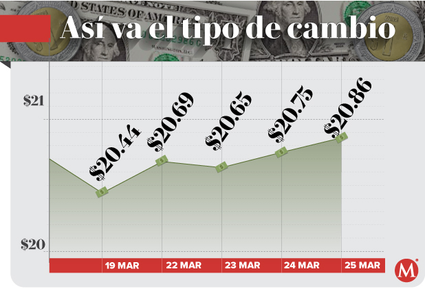 El Banco de México (Banxico) registró la sesión previa un tipo de cambio de 20.78 pesos por dólar.