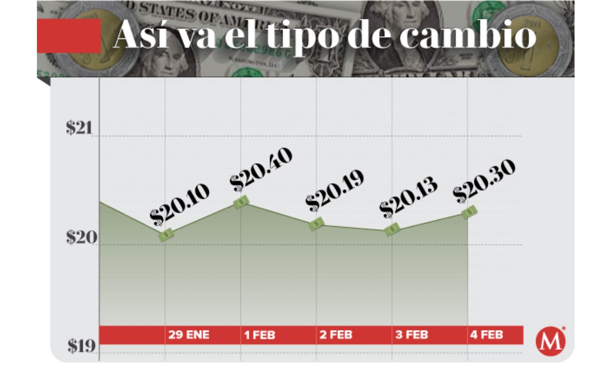 El Banco de México (Banxico) registró la sesión previa un tipo de cambio de 20.19 pesos por dólar.