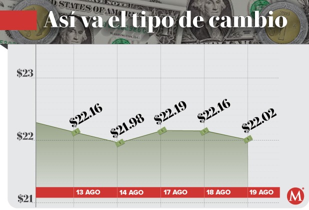 El Banco de México (Banxico) registró la sesión previa un tipo de cambio de 22.18 pesos por dólar.