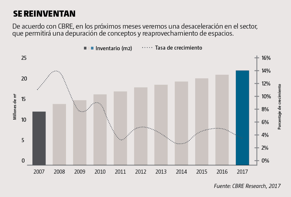 Por su parte, Eduardo Ramírez Díaz, director general de Inmobiliaria Citelis, dice que los próximos años serán un periodo de consolidación y maduración de los proyectos más importantes de centros comerciales, en el que sobrevivirán los que satisfagan las necesidades de ubicación, mezcla comercial y experiencias.