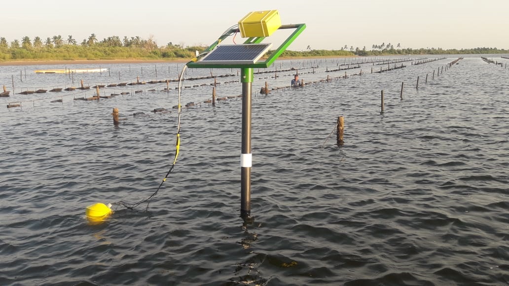 Valdés explicó que su tecnología funciona a través de tres elementos: un dispositivo como una boya que se coloca en el agua y realiza mediciones de salinidad, temperatura y Ph a través de sensores; una aplicación que se conecta al dispositivo través de internet; y una plataforma desde donde los acuicultores pueden monitorear los riesgos en pérdidas de producción a través de sus computadoras o dispositivos móviles. Ahí pueden recibir alertas en caso de que exista una variación en el agua o una amenaza para su cultivo.