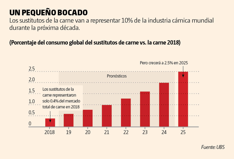 la carne actual permanece. Algunos analistas creen que los sustitutos de la carne van a representar 10% de la industria cárnica mundial de 1.4 millones de dólares durante la próxima década.