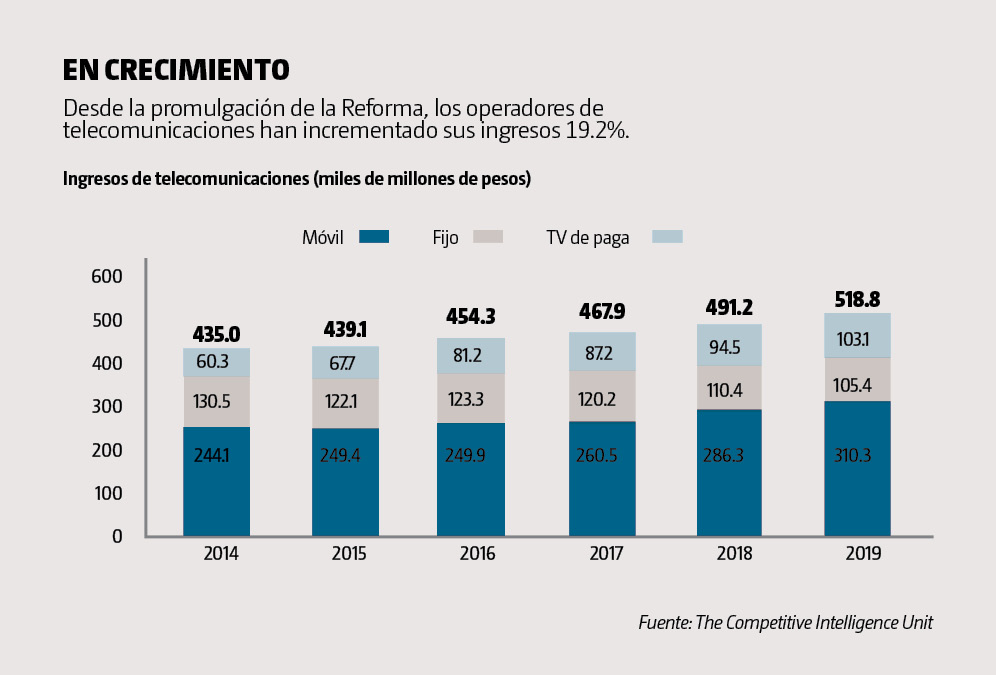 Se espera que para este año, la telefonía fija reduzca su crecimiento entre 6% y 7% en promedio, pero la móvil crecerá aproximadamente 10% y la televisión de paga, entre 8 y 9%.