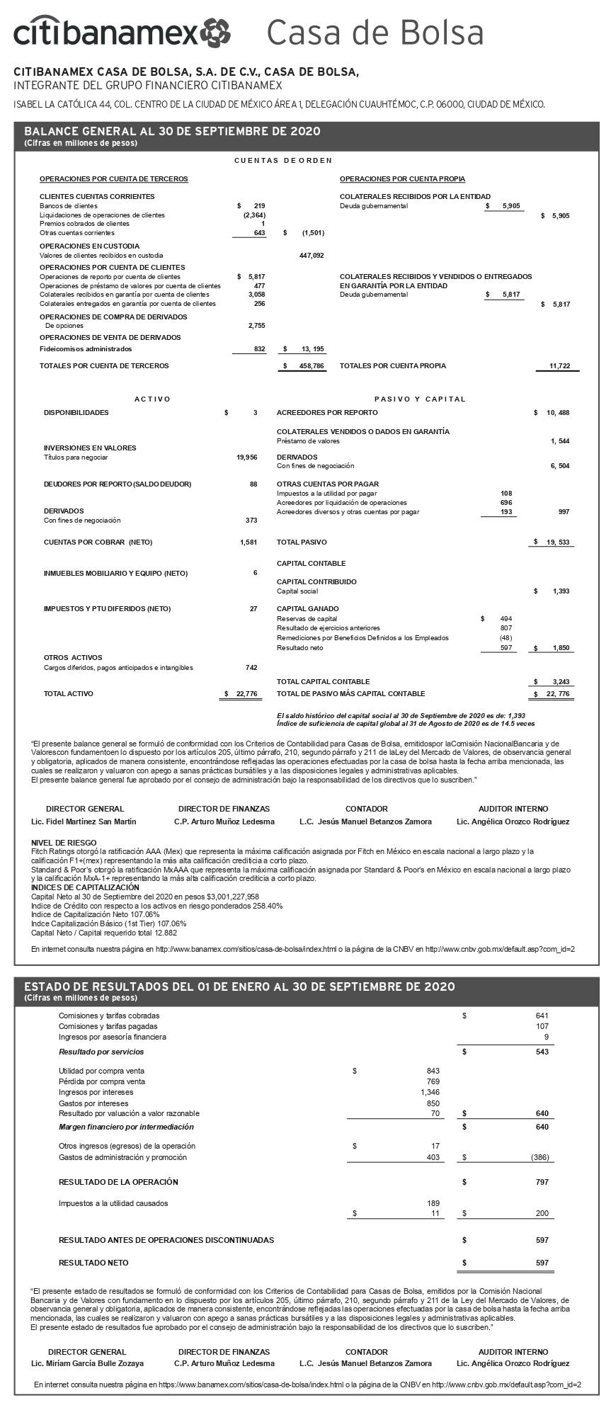 Citibanamex reportó el día de hoy sus resultados financieros al cierre del 3T 2020, los cuales reflejan sólidos indicadores de fortaleza financiera.
