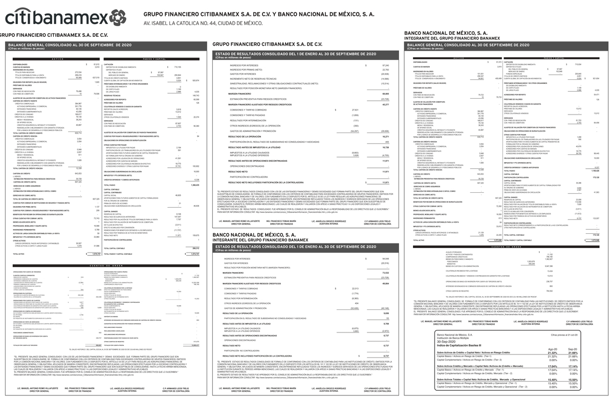 Estados Financieros de Grupo Financiero CITIBANAMEX S.A. DE C.V. y Banco Nacional de México, S.A. al 30 de Septiembre de 2020: