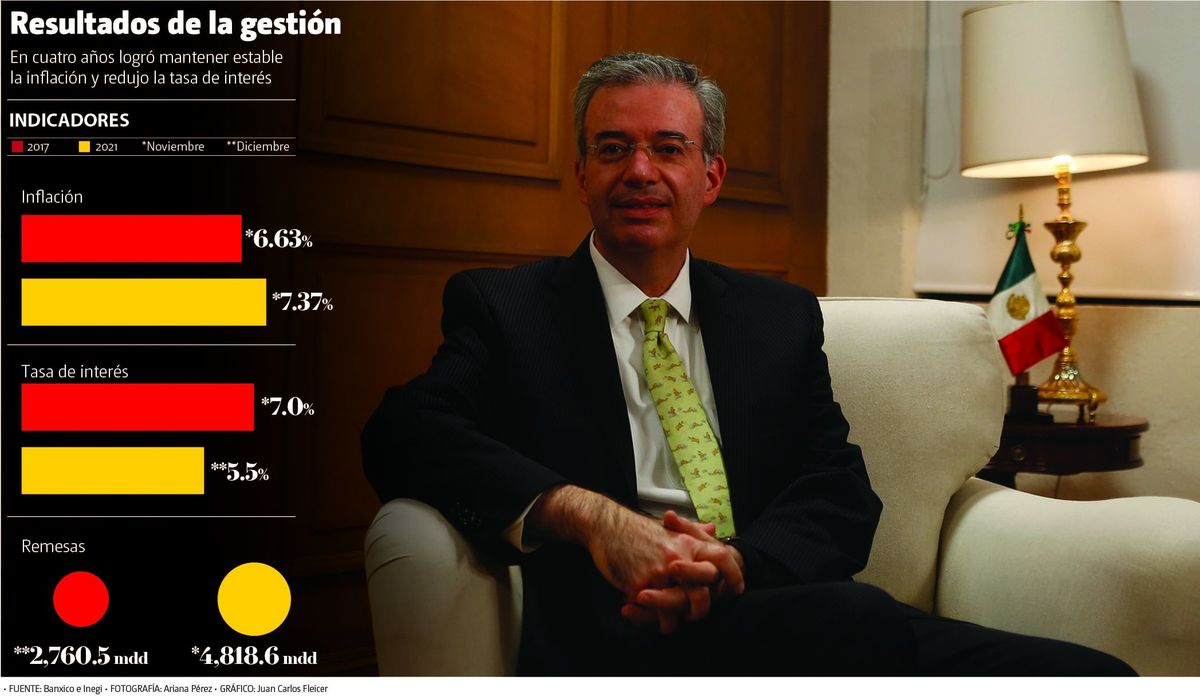 Para él, su mayor reto al estar cuatro años al frente del banco central, fue actuar ante la coyuntura del covid-19. Y ahora habla de la inflación que afecta el bolsillo de los mexicanos, de su legado en la institución y de sus planes a futuro.
