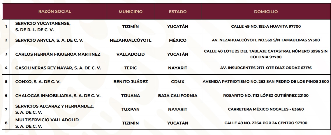 En Servicio Yucatense faltaron 49 mililitros por cada litro de gasolina; en Servicio Arycla, 46 ml; Carlos Hernán, 40 ml; Gasolineras Rey Nayar, 19 ml; Conxo Inmobiliaria, 16 ml; Chalogas, 15 ml; Servicios Alcaraz y Hernández, 13 ml; y Multiservicio Valladolid, 11 ml.
