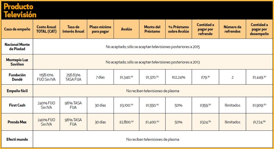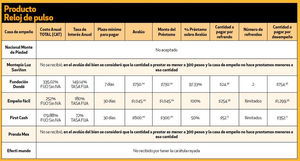 La dependencia, a cargo de Ricardo Sheffield Padilla, visitó en diciembre diversas casas de empeño de la Ciudad de México y comparó cuánto dinero prestan y qué interés cobran por empeñar los mismos productos.