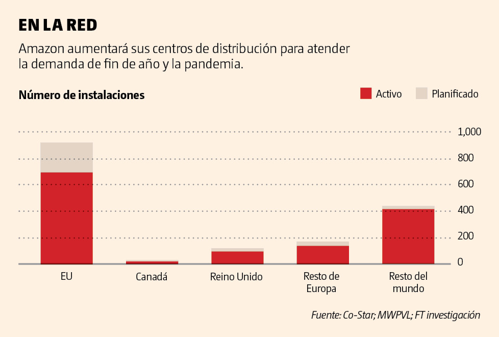 Hablando con los inversionistas recientemente, después de capear la tormenta de la primera ola de una pandemia global, el director financiero de Amazon, Brian Olsavsky, planteó el próximo desafío de la compañía en los términos más sencillos posibles: “Nos hemos quedado sin espacio”. La llegada del coronavirus (covid-19) estimuló a Amazon a acelerar lo que ya era una estrategia de expansión agresiva.