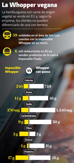 Después de que las asociaciones anteriores con cadenas de restaurantes de Estados Unidos, entre ellas Cheesecake Factory y White Castle, tuvieron éxito, Impossible confía en que su prueba inicial en 59 establecimientos de Burger King en San Luis, Misuri, podría conducir a un despliegue nacional para finales de este año.