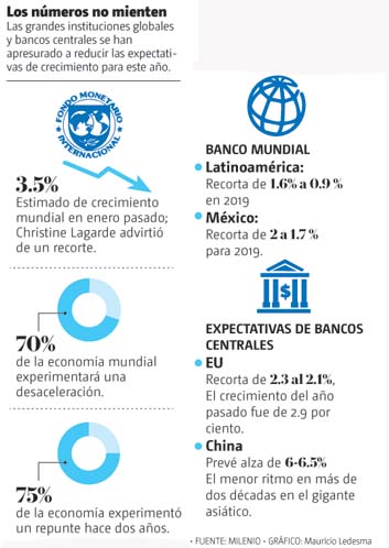 El deterioro de la perspectiva provocó advertencias de Christine Lagarde, la directora general del FMI, quien dijo que el fondo va a recortar sus pronósticos de crecimiento a finales de esta semana, y que la Organización Mundial de Comercio (OMC) dijera que las amenazas continuas de pleitos comerciales debilitaron los pronósticos.