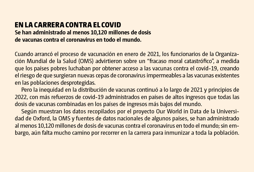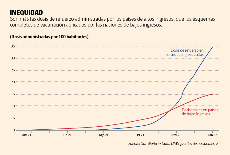 De hecho, el número de refuerzos administrados en los países de altos ingresos supera el total de las primeras y segundas dosis de las vacunas que se administraron en los países pobres, y la diferencia se está ampliando.