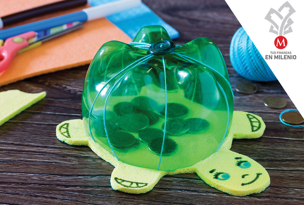 - Fabrica con ellos una alcancía, podrás fomentar conceptos como ahorro, deuda y precio. Diles que toda moneda que reciban es mejor guardarla en el cochinito, así podrán comprar lo que deseen más adelante.