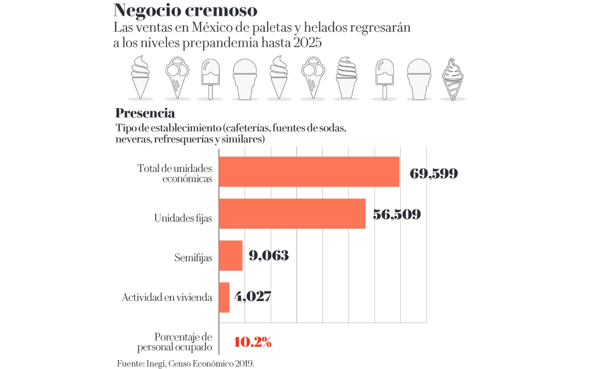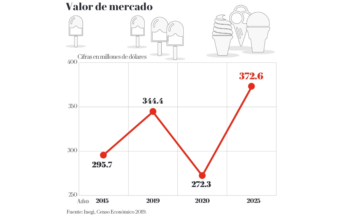 Según Euromonitor International, la industria de los helados pasó de tener un valor en 2019 por 344.4 millones de dólares a 272.4 millones para 2020; sin embargo, se pronostica que para 2025 podrá alcanzar hasta los 372.6 millones de dólares.