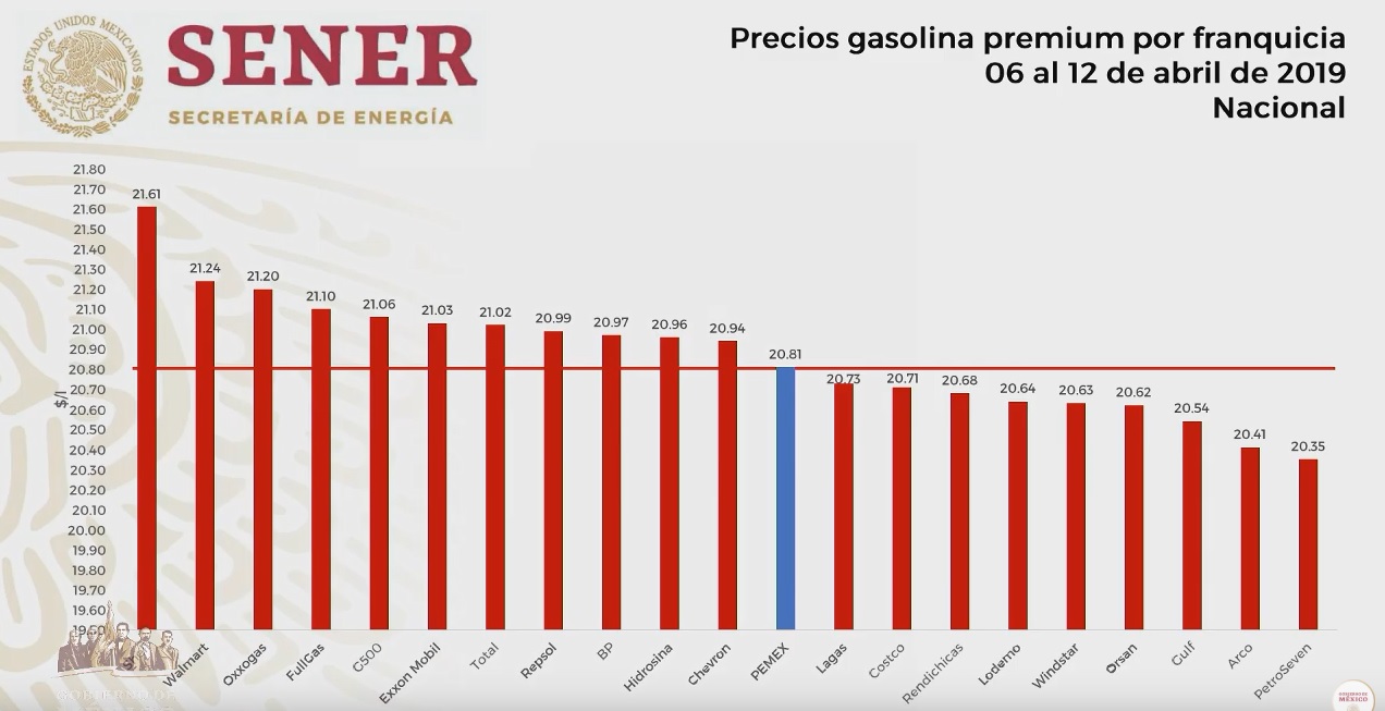 La secretaria de Energía, Rocío Nahle, reveló en la conferencia mañanera del presidente Andrés Manuel López Obrador cuáles fueron las marcas de gasolina que del 6 a 12 de abril vendieron el combustible regular y premium más caro y más barato en el país.