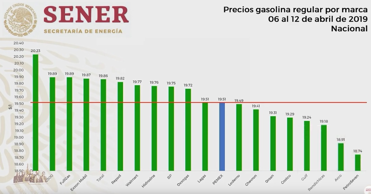 - Gulf: $20.54 por litro
