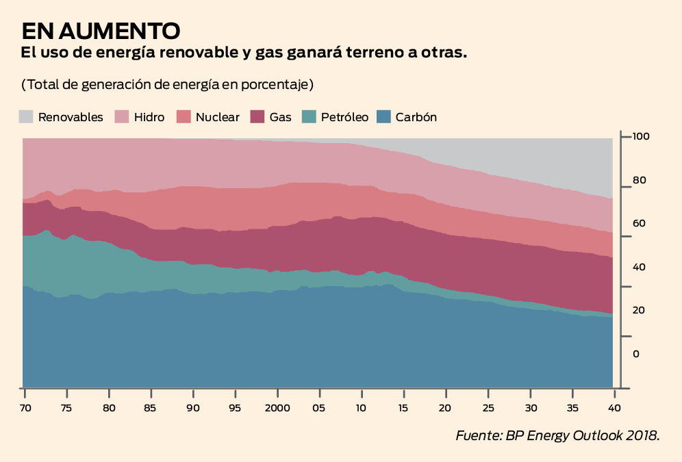 BP, en su panorama a 2040, espera que casi 70% del aumento de la energía primaria sea en el sector de electricidad. La demanda de esta aumentará tres veces más rápido que la de otras fuentes de energía.