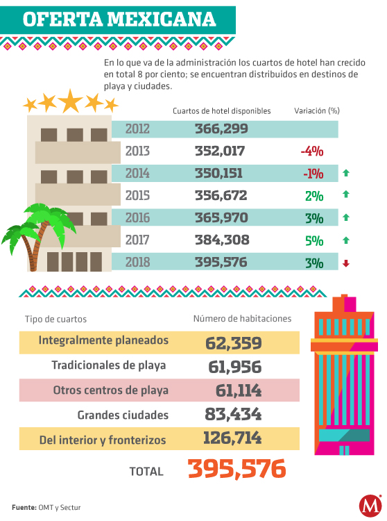 En cuanto al incremento de infraestructura de las empresas, afirmó que al final de esta administración se tendrán 800 mil cuartos, lo que significará un avance de 23 por ciento, respecto a lo que se tenía en 2013.