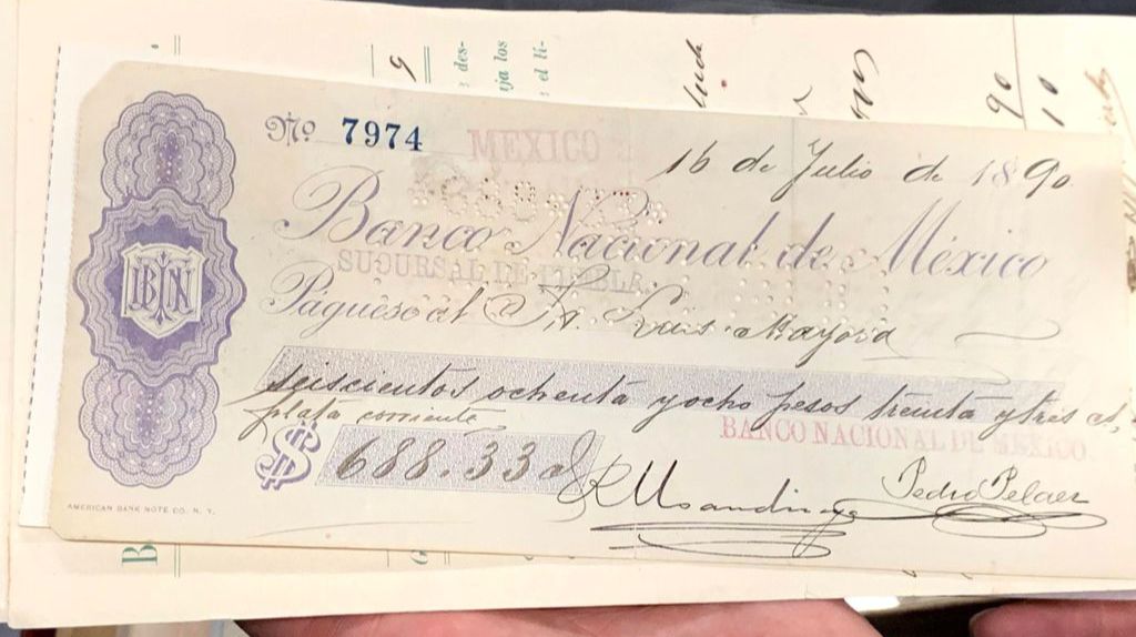 3) En 1886 fue el primer banco en México en emitir un cheque; el folio 7974 fue hecho por un monto de 688.33 pesos y realizado por Luis Mayorga.