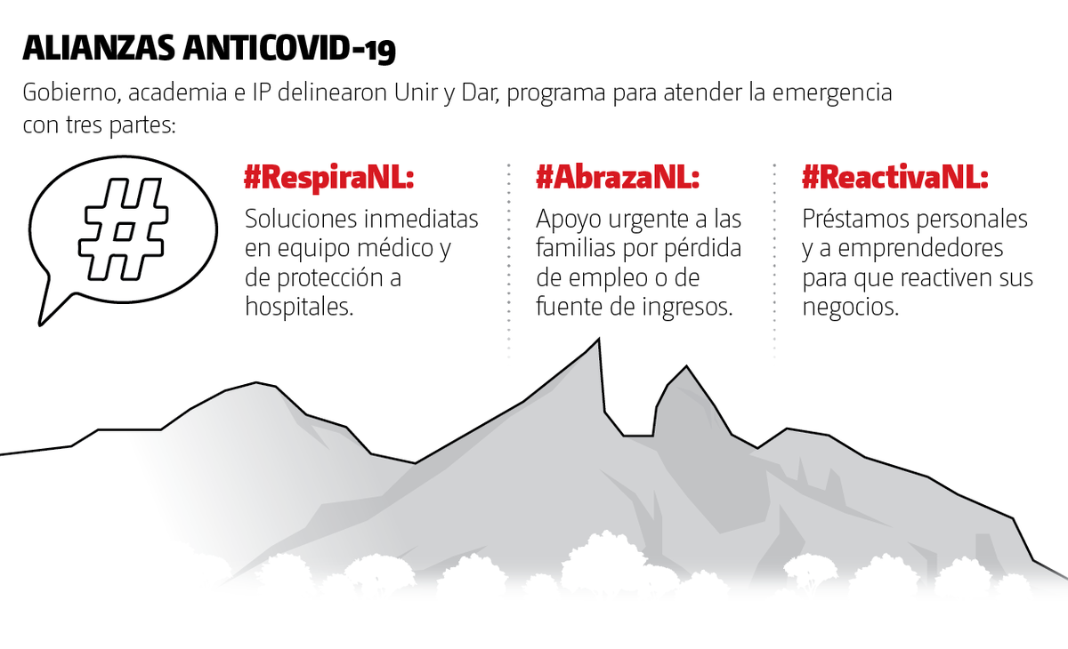De ahí surgió también la plataforma Unir y Dar, que opera lo mismo la generación de donativos que de voluntarios para tres estrategias: #AbrazaNL, #RespiraNL y #ReactivaNL. El pasado 1 de junio el Consejo Nuevo León recibió el Premio ONU al Servicio Público en 2020.