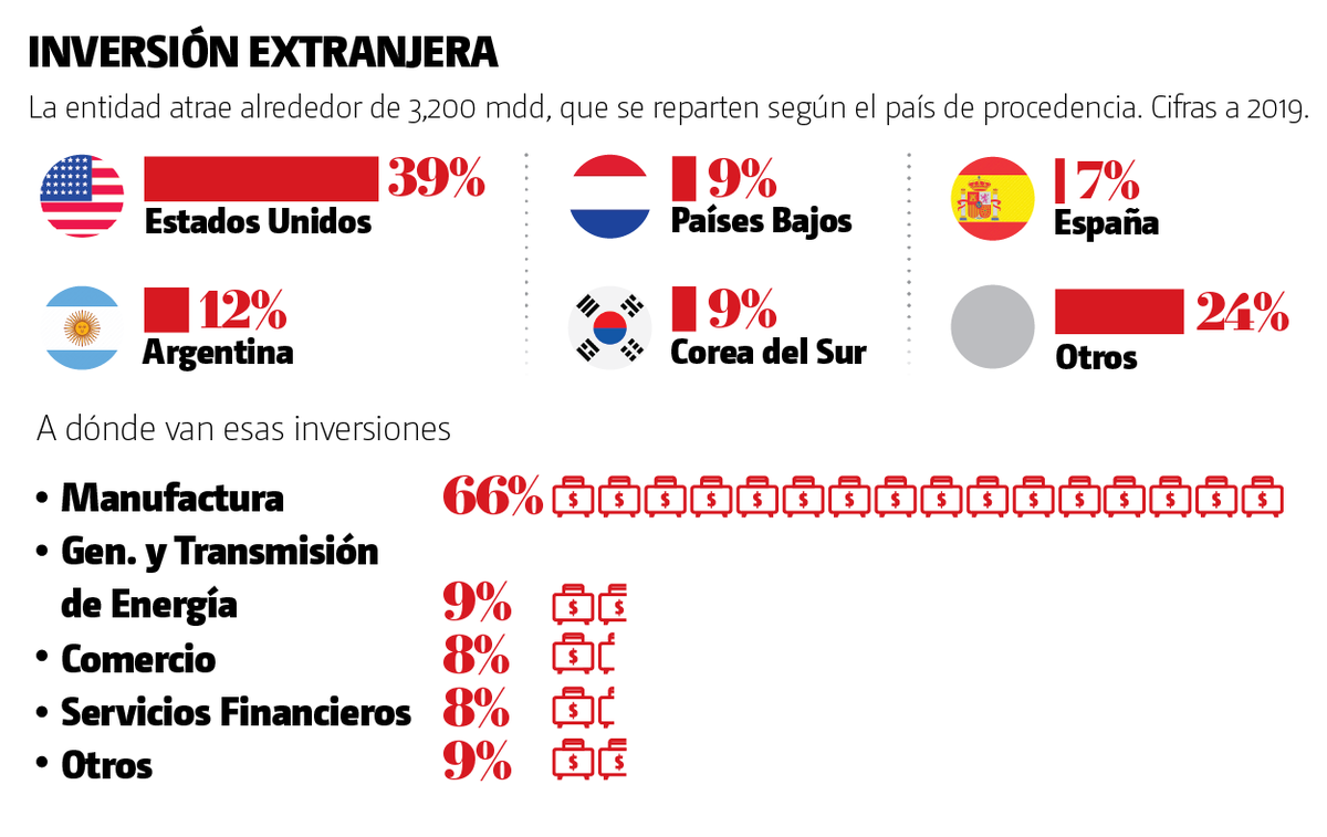 La segunda, en la reactivación económica. Algo delicado para un estado que atrae alrededor de 3 mil 200 millones de dólares por año, que genera 7.2 por ciento del PIB Nacional y contribuye 43 por ciento del valor de la manufactura a través de 148 mil empresas.
